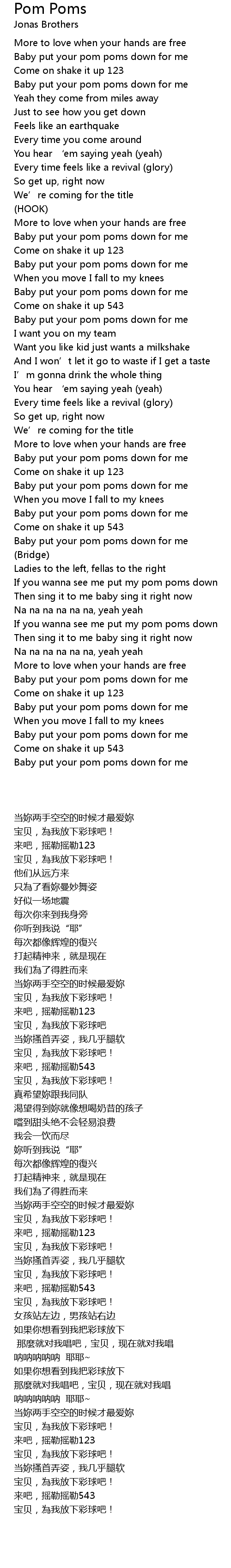 | [02:14.120] | If you wanna see me put my pom poms down |
