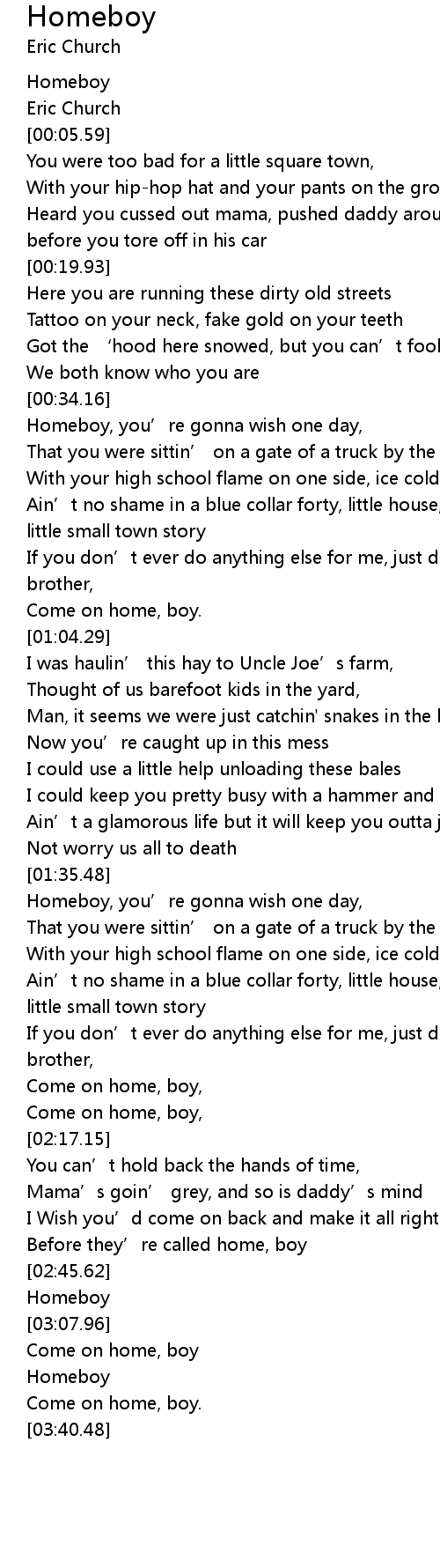 | [00:03.27] | Homeboy |