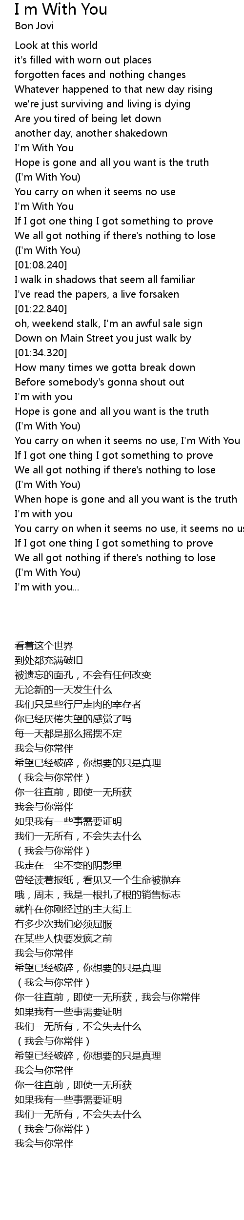 You carry on when it seems no use, I'm With You |