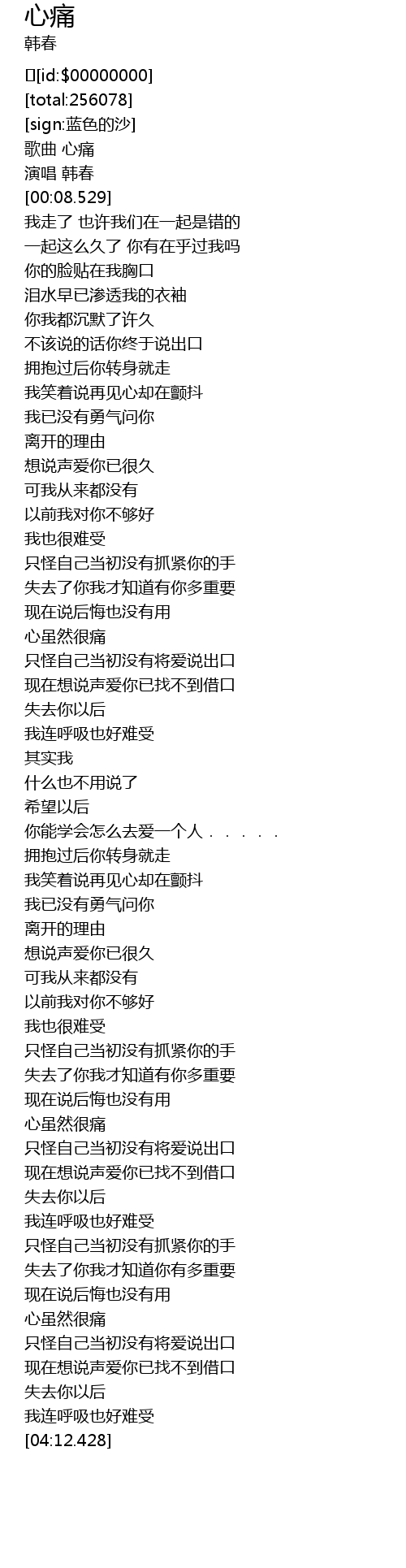 | [00:05.374] | 演唱 韩春 |
