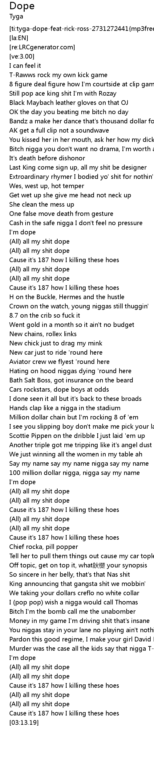 | [00:52.34] | All all my shit dope |