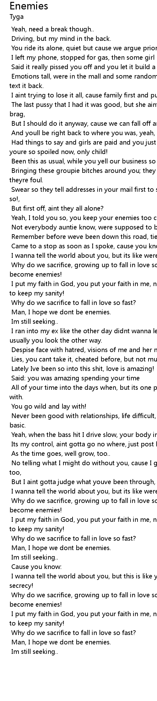 Why do we sacrifice, growing up to fall in love so fast, hope we dont become enemies! |