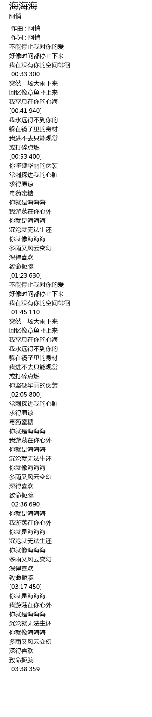 | [02:27.400] | nǐ jiù xiàng hǎi hǎi hǎi |