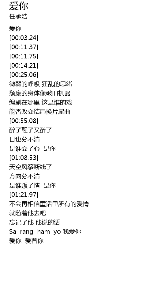 | [01:43.59] | Sa rang ham yo 我爱你 |