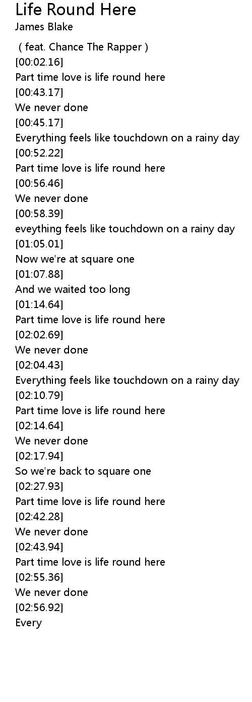 | [00:53.40] | Part time love is life round here |