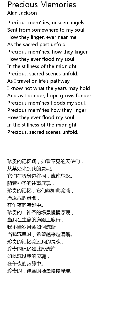 Precious mem'ries floods my soul. |