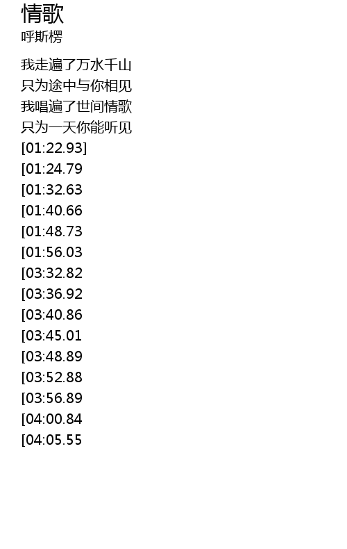 | [03:04.79][01:32.63] | 只为寻找一段尘缘 |