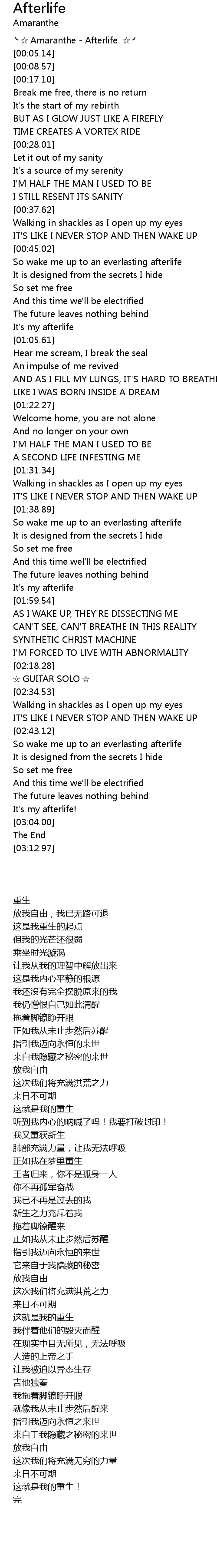 | [00:00.95] | ╰ ☆ Amaranthe - Afterlife ☆ ╯ |