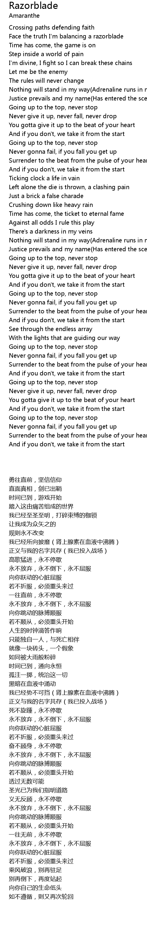 | [02:40.39] | You gotta give it up to the beat of your heart |