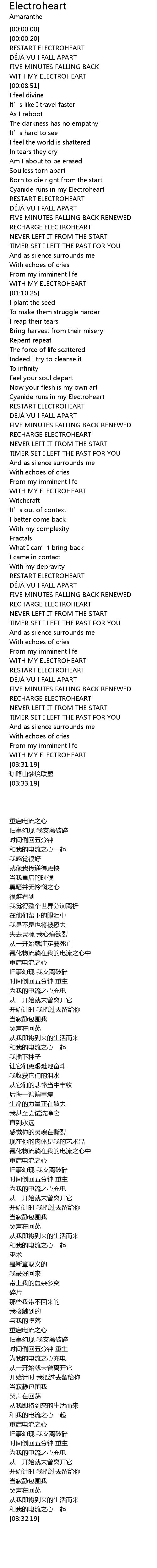 | [00:41.93] | Cyanide runs in my Electroheart |