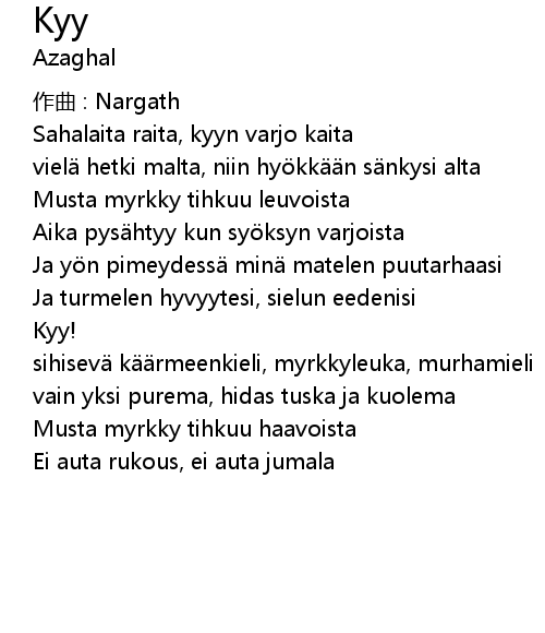 | Ja y n pimeydess min matelen puutarhaasi | |