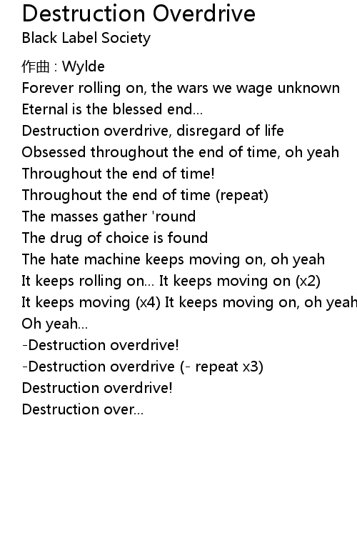 | Song | Destruction Overdrive |