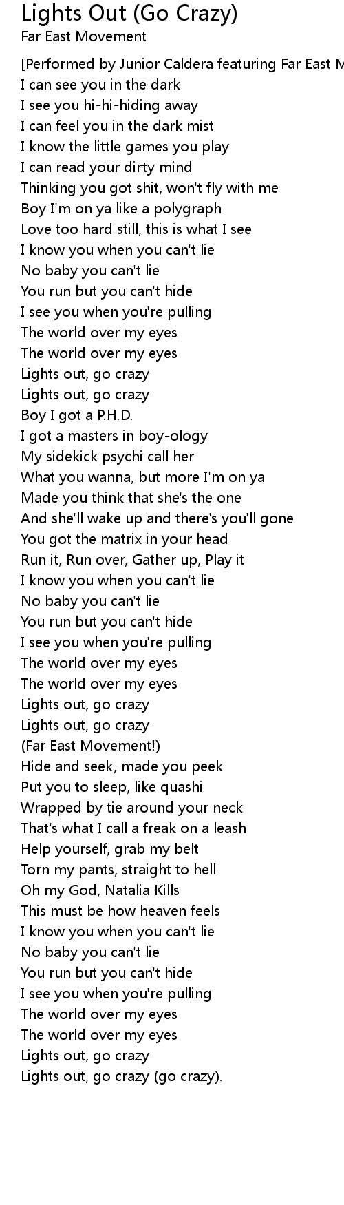 Lights out, go crazy (go crazy). |