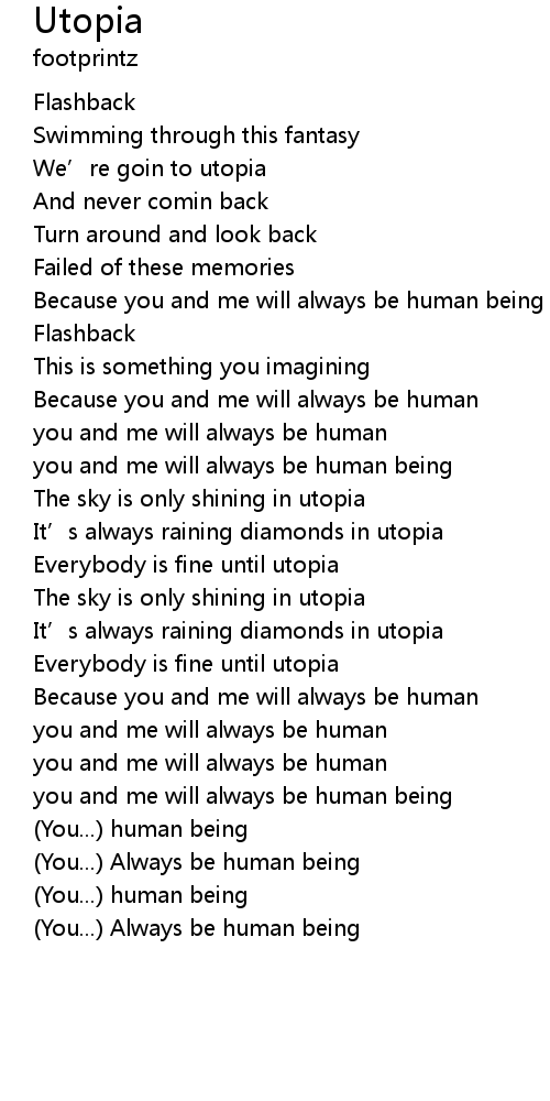 | [03:15.000] | It' s always raining diamonds in utopia |