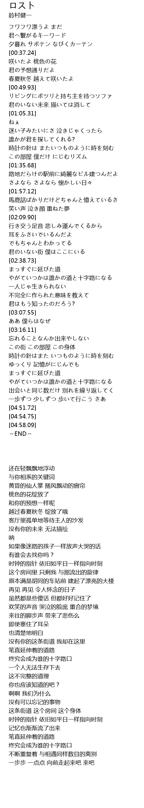 | [02:30.60] | 君のいない街 僕はここにいる |