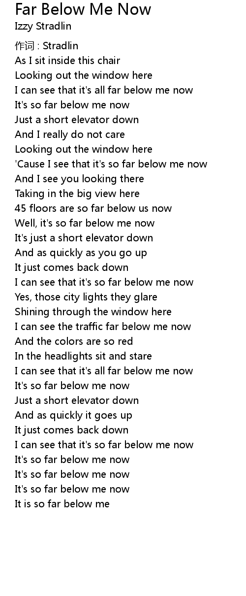 | Song | Far Below Me Now |