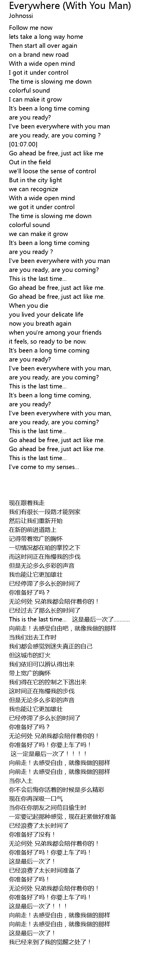 | [00:59.00] | I' ve been everywhere with you man |