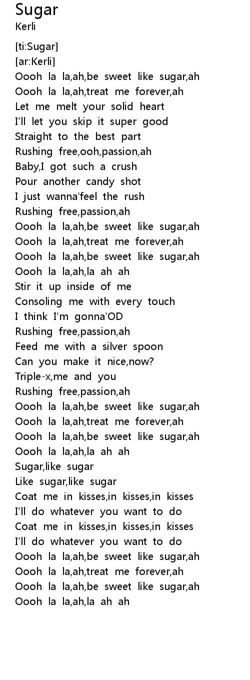 | [00:52.372] | Oooh la la,ah,be sweet like sugar,ah |