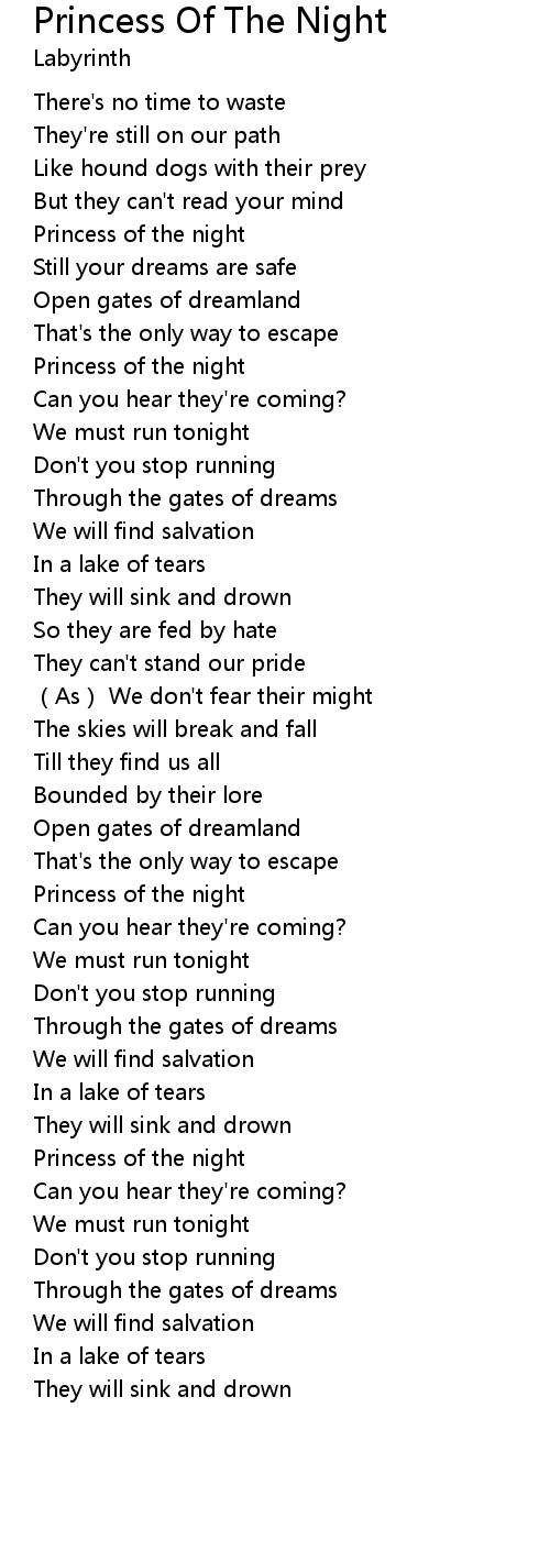 | Song | Princess Of The Night |