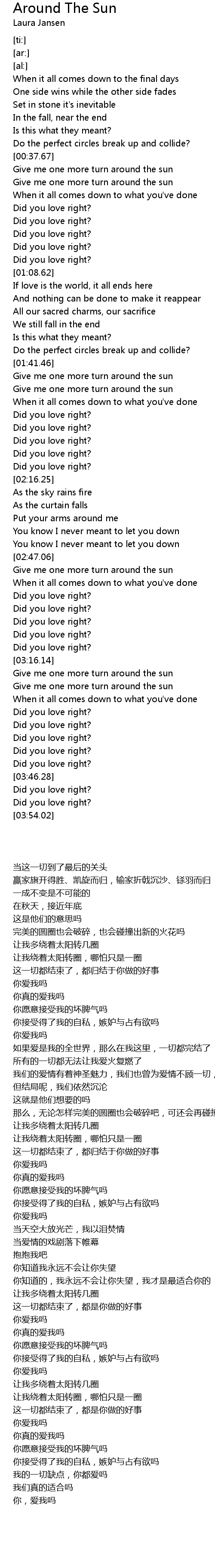 Give me one more turn around the sun |