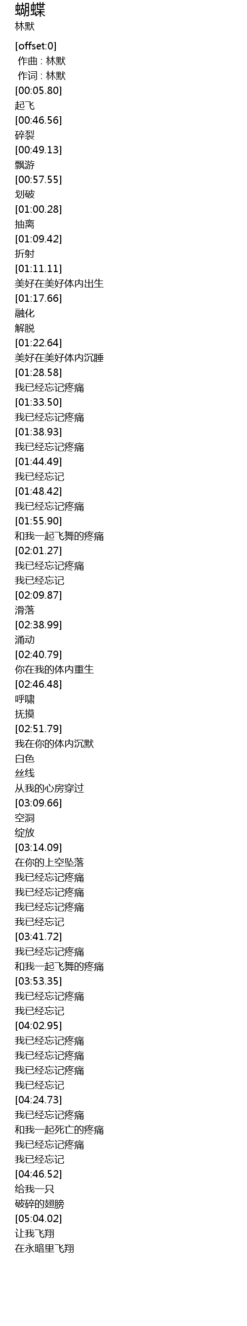 | [05:00.45] | 破碎的翅膀 |