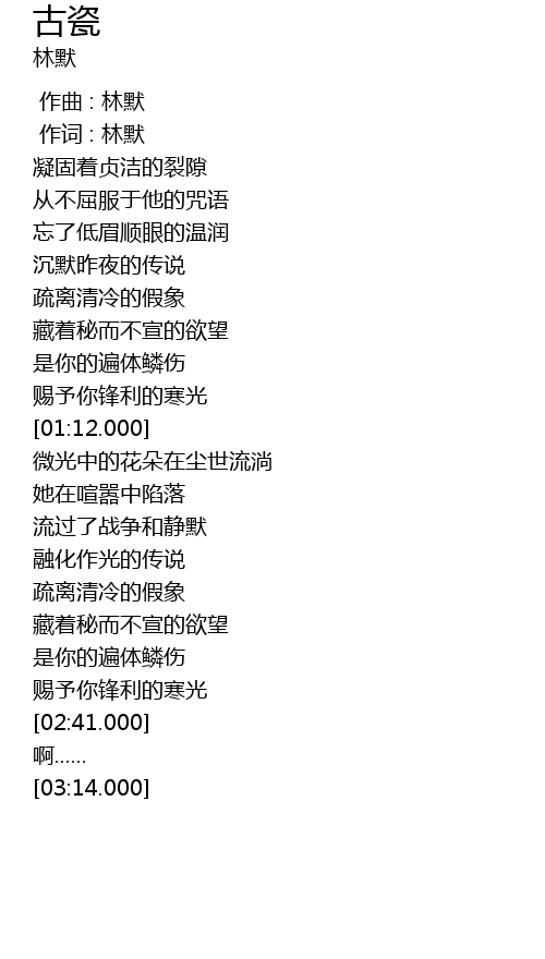 | [00:00.00] | 作曲 : 林默 |