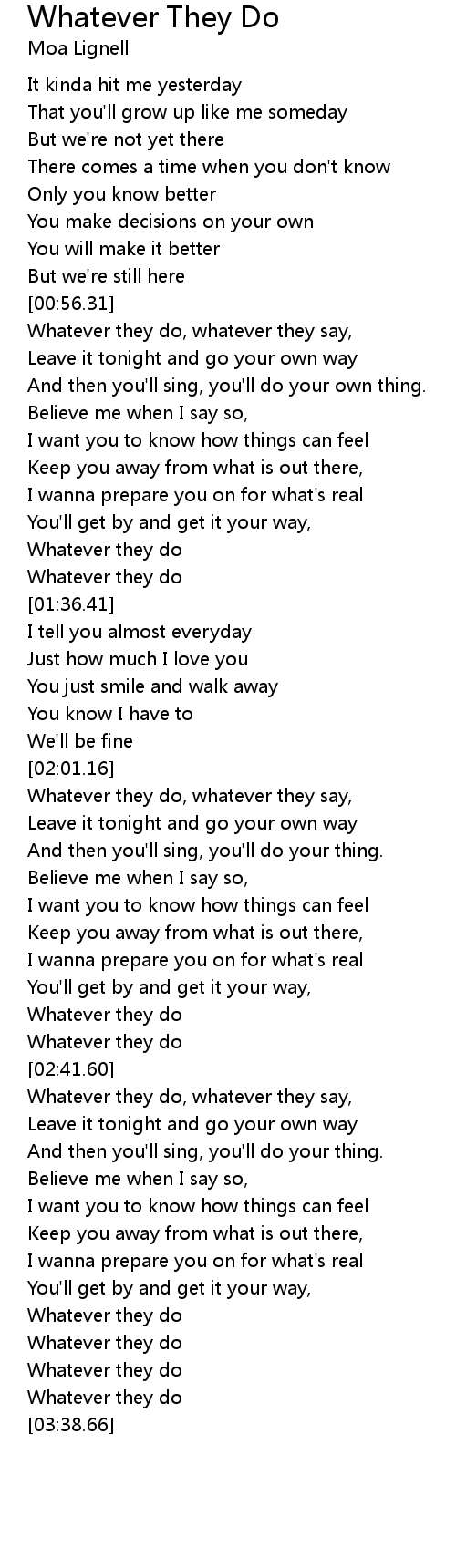 Whatever they do, whatever they say, |