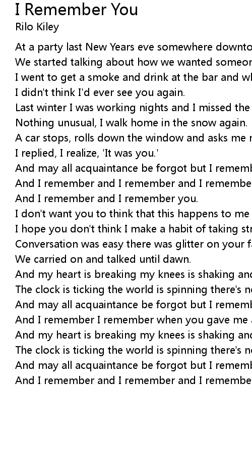 And I remember and I remember and I remember you |