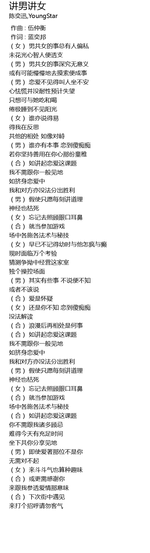 | [00:10.648] | (男) 男共女的事深究无意义 |