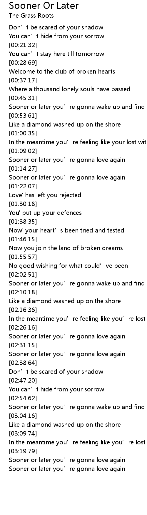 | [03:25.03] | Sooner or later you’re gonna love again |