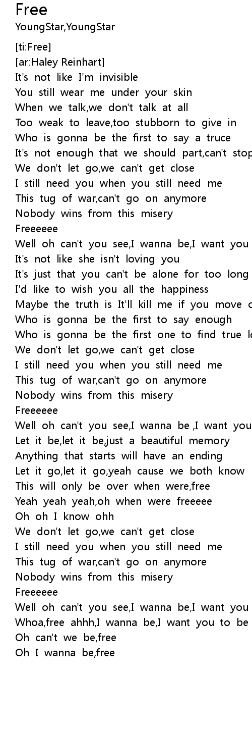 | [02:22.26] | Well oh can't you see,I wanna be ,I want you to be,free |