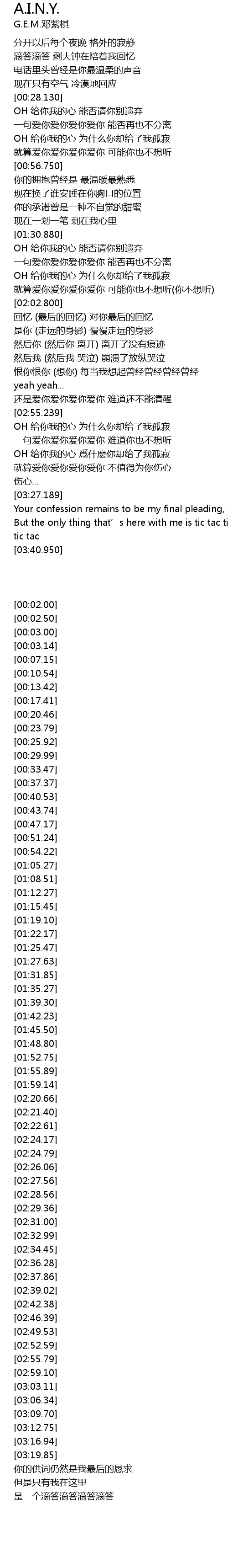 | [03:34.989] | But the only thing that' s here with me is tic tac tic tac tic tac tic tac |