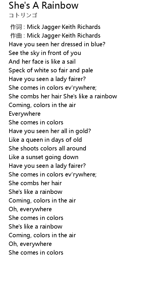 | [02:31.93] | She combs her hair She's like a rainbow |