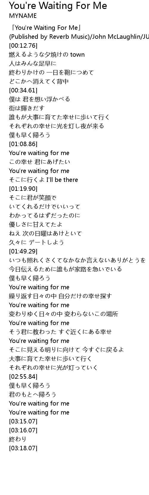 | [00:00.76] | 「You're Waiting For Me」 |