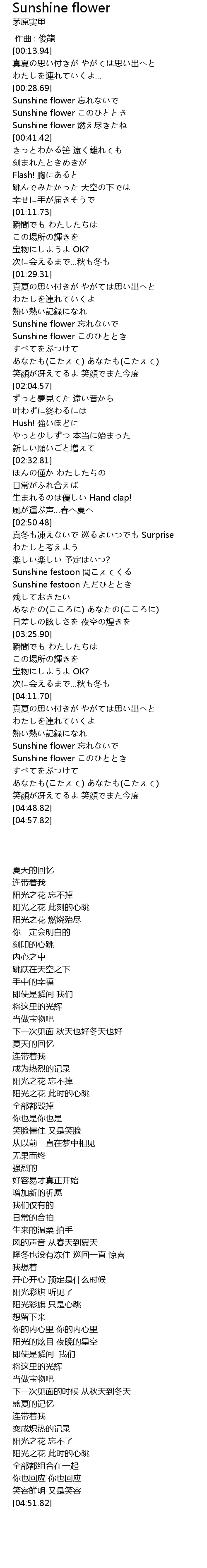 | [00:37.37] | Sunshine flower 燃え尽きたね |