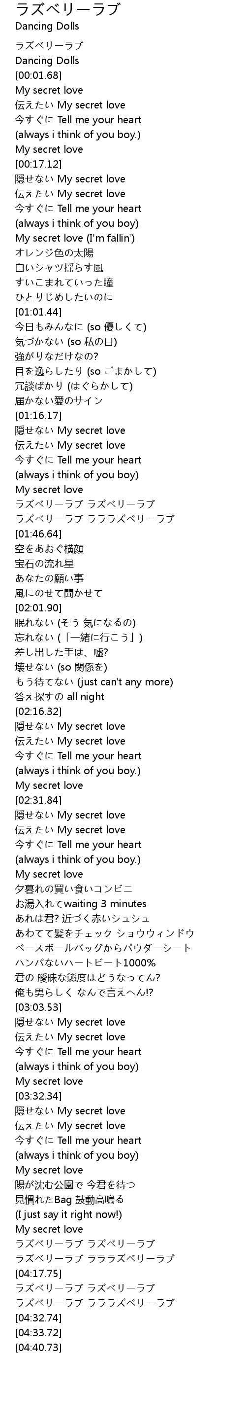 | [04:18.85] | ラズベリーラブ ラズベリーラブ |