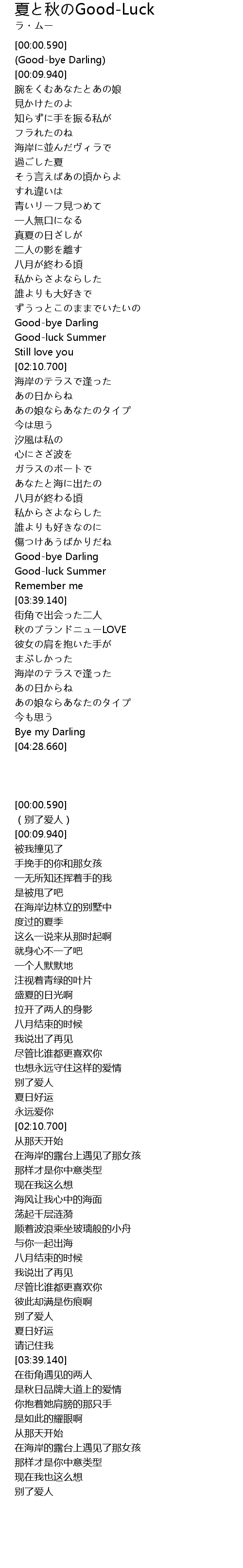 xia qiu GoodLuck Lyrics