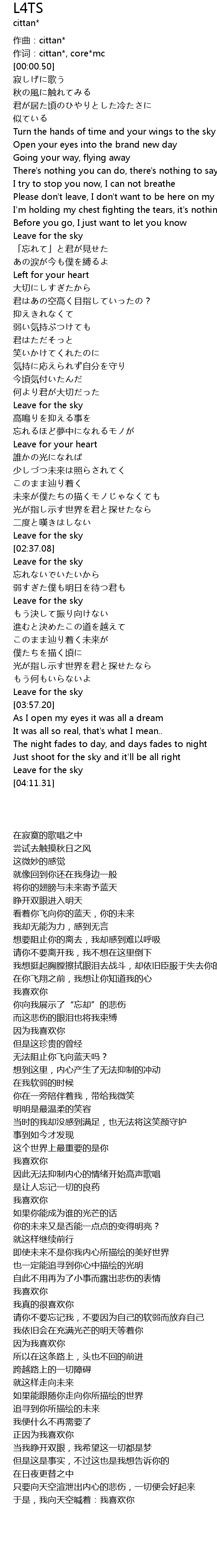 | [03:52.53] | Leave for the sky |