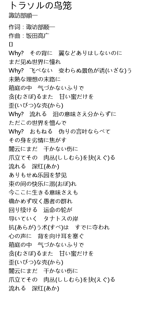 | Why? 飞べない 变わらぬ景色が诱(いざな)う | |
