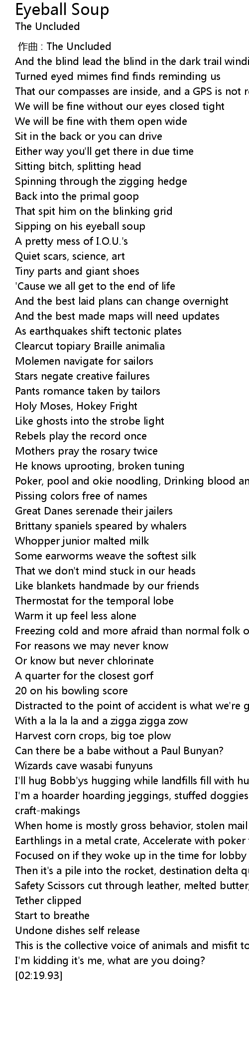 | [00:15.69] | Turned eyed mimes find finds reminding us |