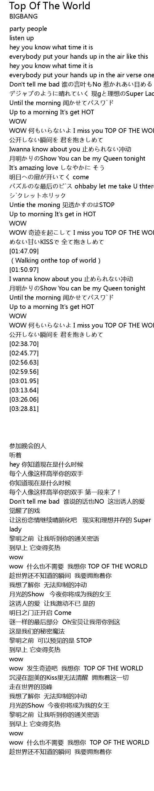 | [02:21.67] | WOW hé I miss you TOP OF THE WORLD |