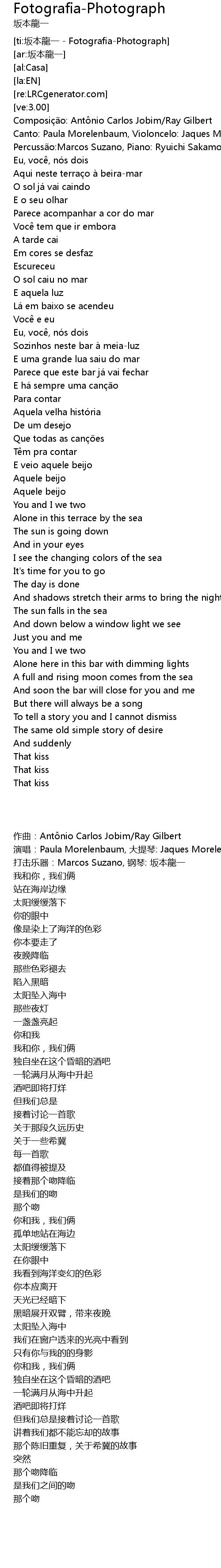 | [ti:坂本龍一 - Fotografia-Photograph] | |