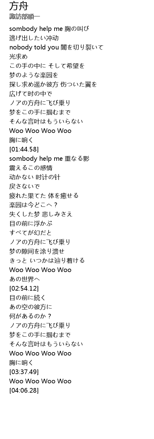 | [01:19.19] | ノアの方舟に飞び乗り |