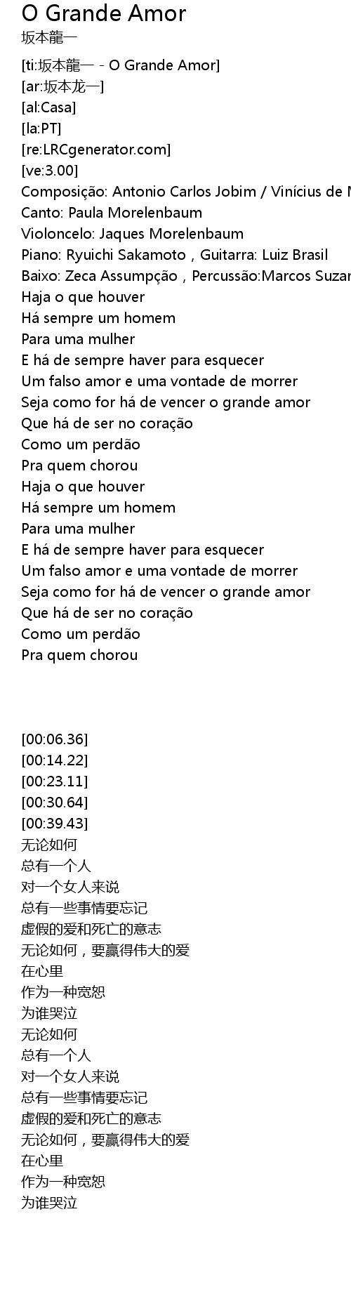 | [ti:坂本龍一 - O Grande Amor] | |