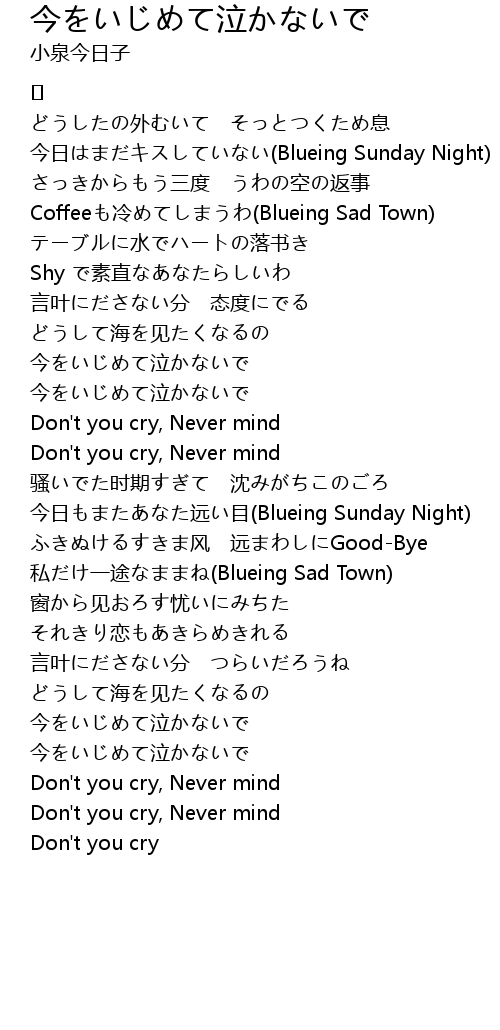 | Don' t you cry, Never mind | |