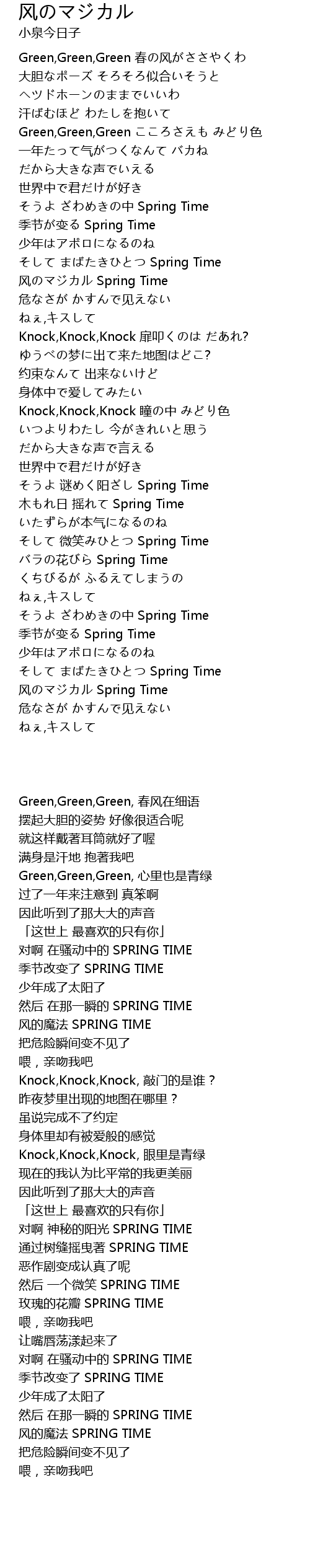 | [00:20.37] | Green, Green, Green chūn fēng |