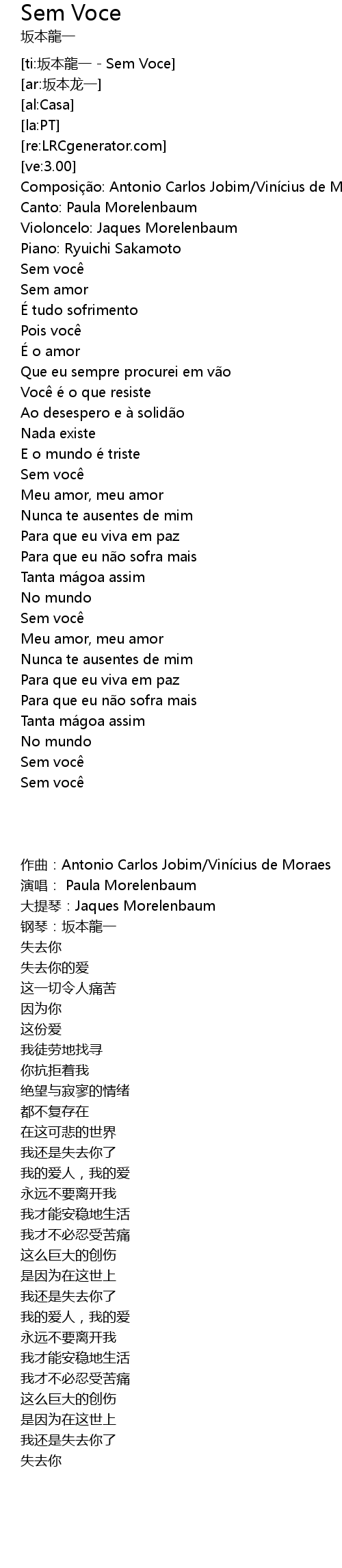 | [00:30.69] | Violoncelo: Jaques Morelenbaum |