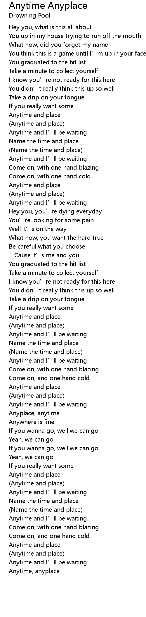 | [02:58.86] | Anytime and place |