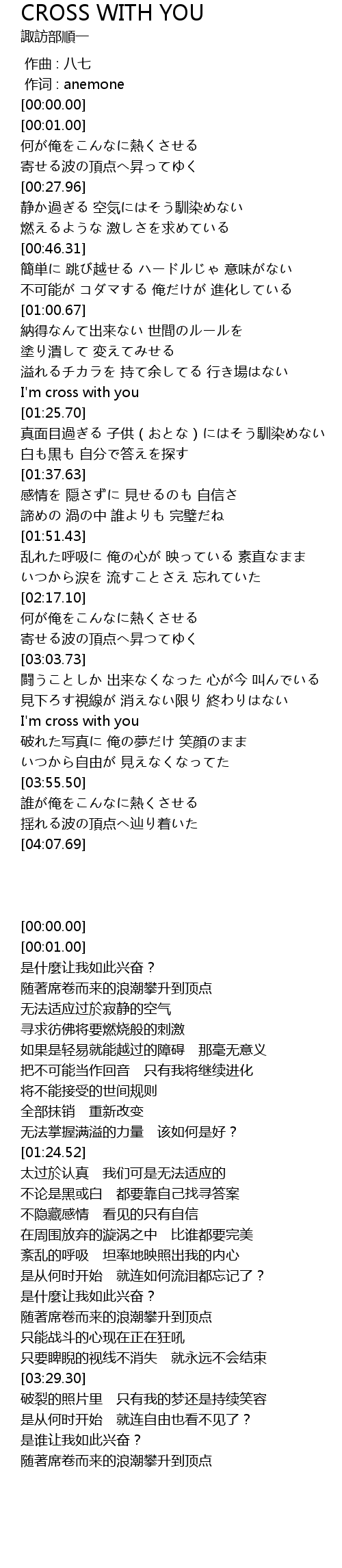 | [01:51.95] | 乱れた呼吸に 俺の心が 映っている 素直なまま |
