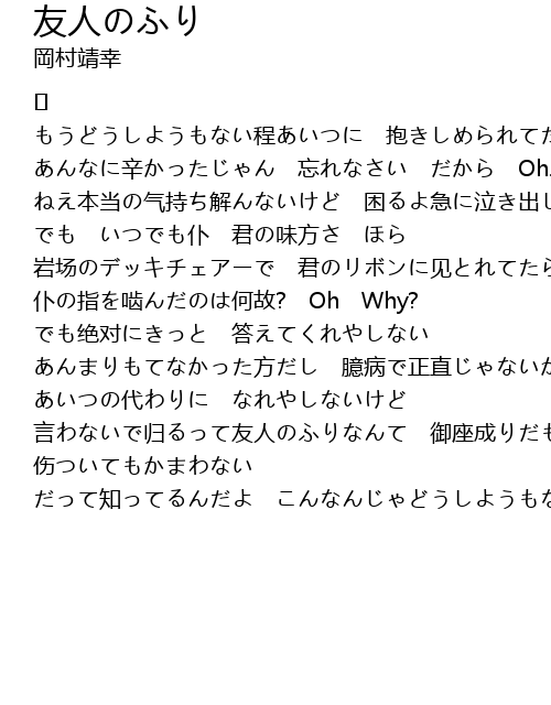 | 言わないで归るって友人のふりなんて 御座成りだもん | |
